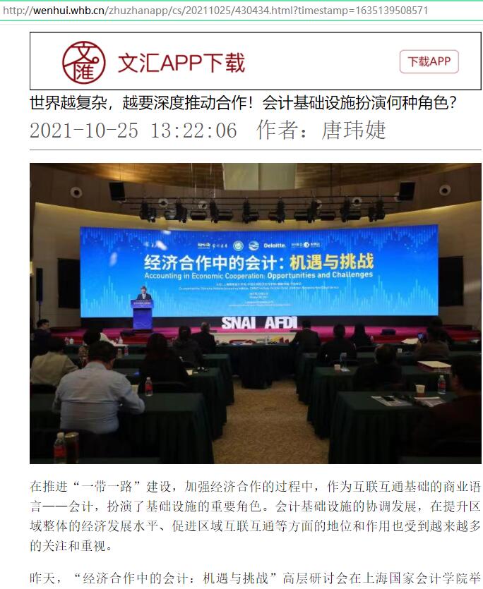 世界越复杂,越要深度推动合作!会计基础设施扮演何种角色?【2021年10月25日,文汇报】