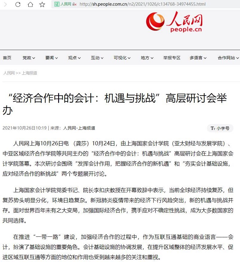 “经济合作中的会计:机遇与挑战”高层研讨会举办【2021年10月26日,人民日报】