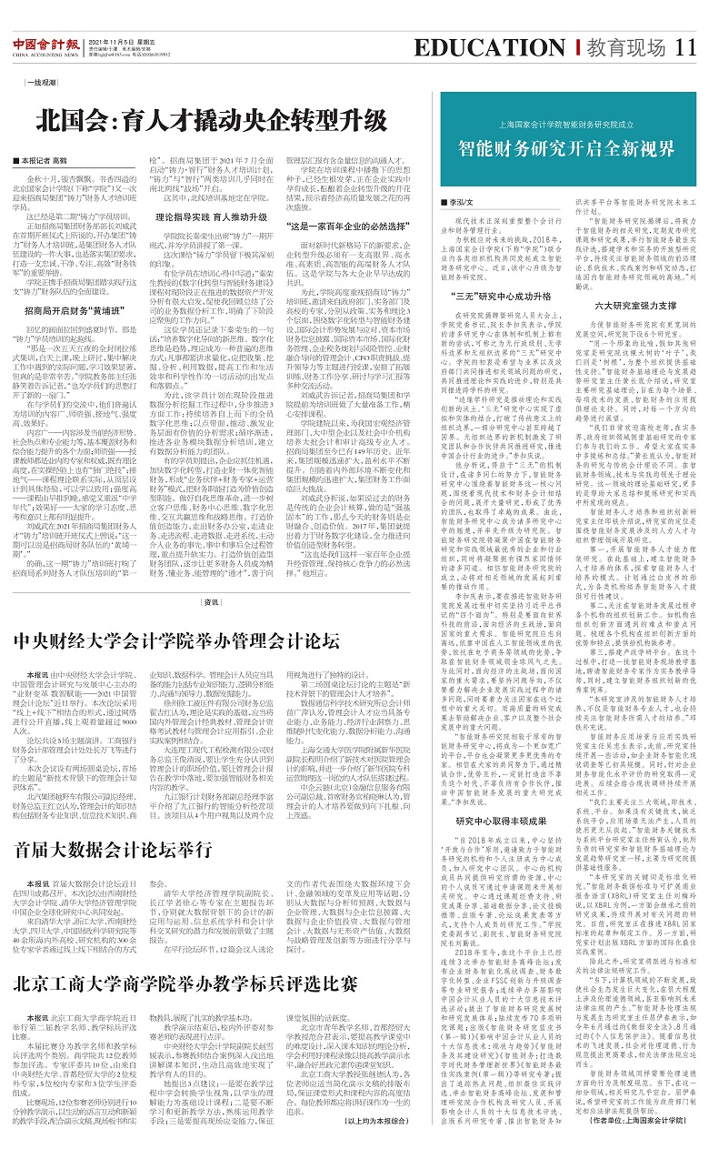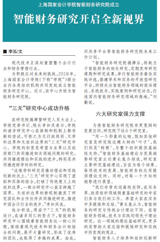 上海国家会计学院智能财务研究院成立:智能财务研究开启全新视界【2021年11月5日,中国会计报】