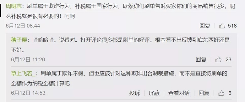 电商刷单补税消息刷屏