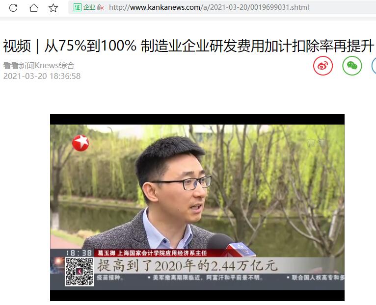 葛玉御:视频|从75%到100% 制造业企业研发费用加计扣除率再提升【2021年3月20日,看看新闻】