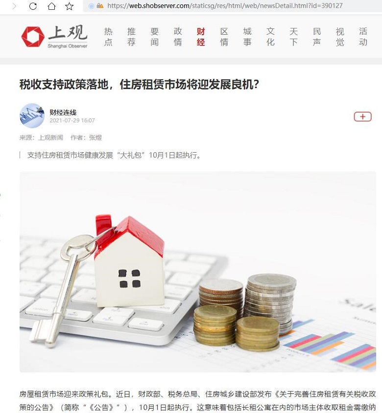 葛玉御:税收支持政策落地,住房租赁市场将迎发展良机?【2021年7月29日,解放日报】
