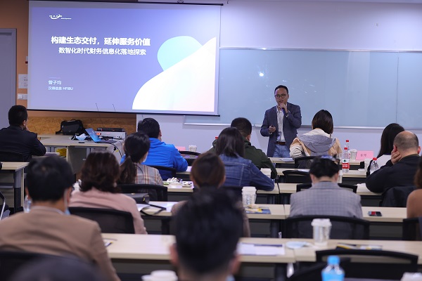 汉得甄盈业财华东区总经理吴凯先生则从业务与财务两方面发现痛点,结合经典客户案例,介绍汉得实现业财一体化产品——中台化结算系统的特点:灵前台、强中台、稳后台。并详细介绍了中台化结算系统的五大核心价值:一是自动化清分结算,解决交易合作方算钱和分钱的问题;二是交易对账自动高效;三是多方协同系统化,催收流程透明化;四是业财联动,高效精准;五是业务赋能,更便捷、高效、安全。汉得智慧财务事业部总经理曾子均先生为大家讲述了数智化时代财务信息化的落地探索。他提到,在数字化浪潮下,企业的经营和管理模式都在发生变化,财务的未来必然是数字化+智能化,数智化需求将成为财务信息化实施方法论进化的内动因。
