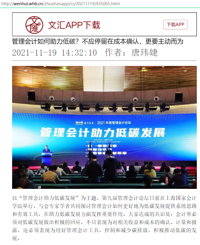 管理会计如何助力低碳?不应停留在成本确认,更要主动而为【2021年11月19日,文汇报】