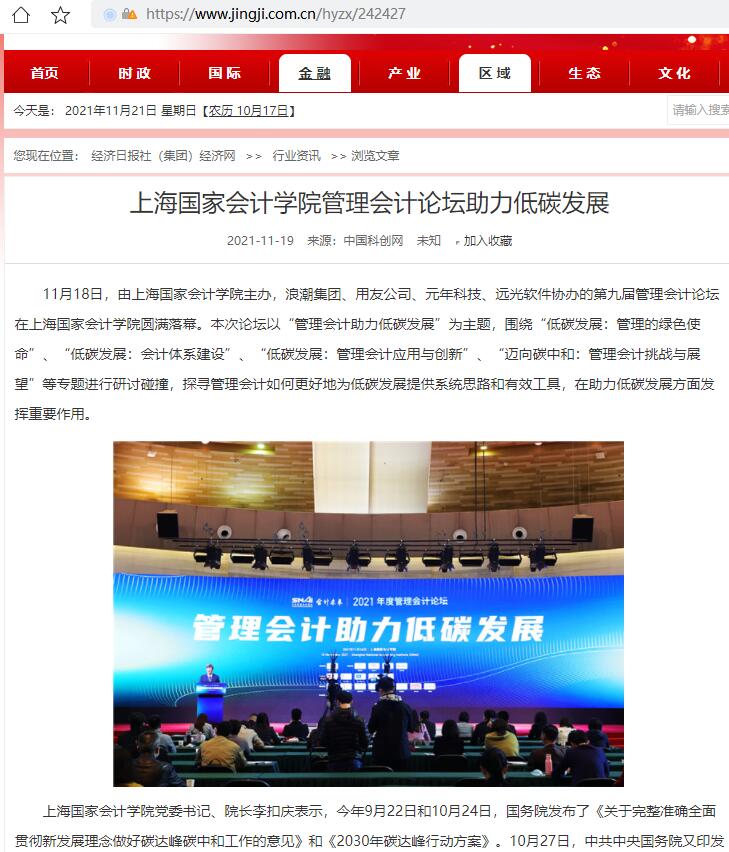 上海国家会计学院管理会计论坛助力低碳发展【2021年11月19日,经济日报-经济网】