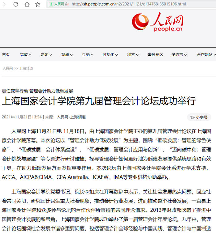 上海国家会计学院第九届管理会计论坛成功举行【2021年11月21日,人民日报】