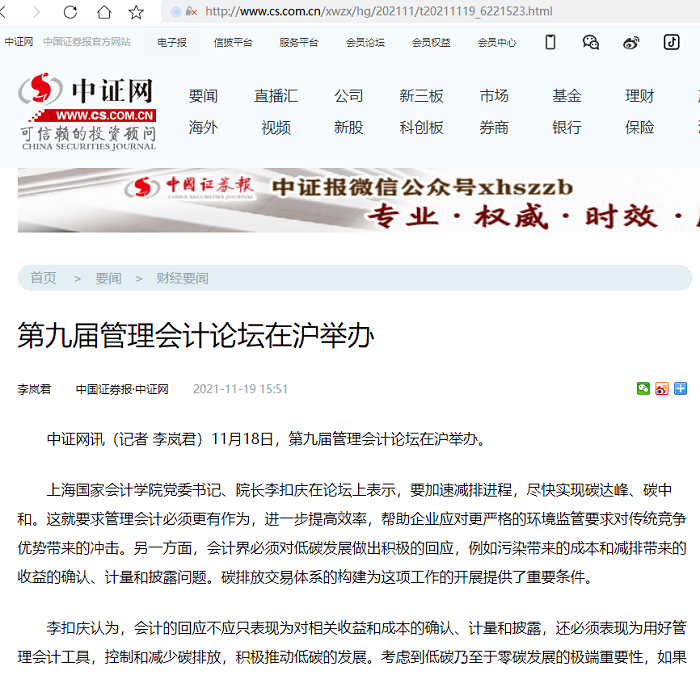 第九届管理会计论坛在沪举办【2021年11月19日,中国证券报】