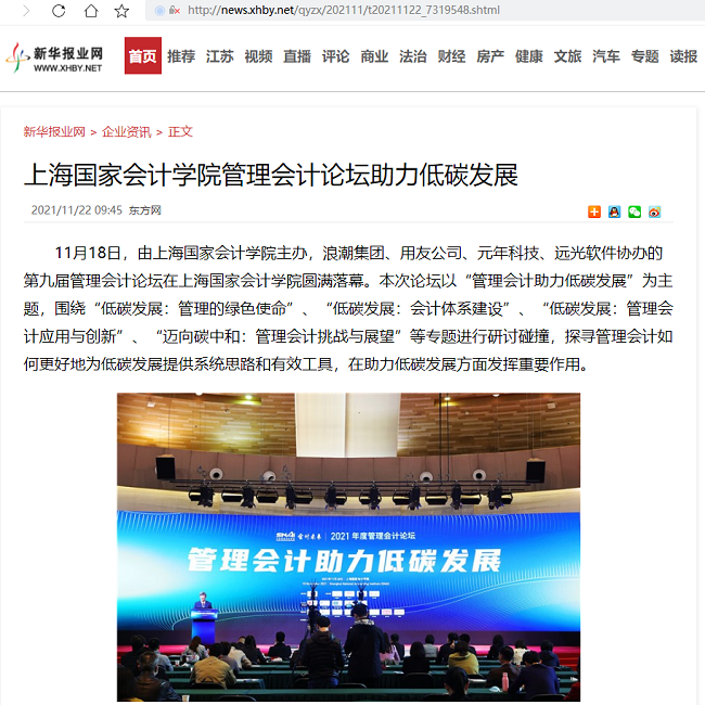 上海国家会计学院管理会计论坛助力低碳发展【2021年11月22日,新华日报】
