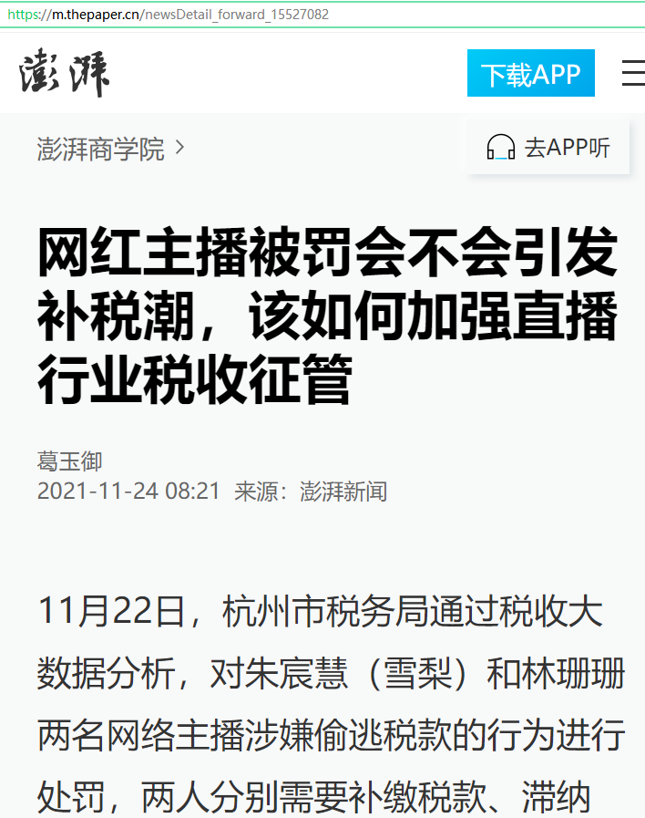 葛玉御:网红主播被罚会不会引发补税潮,该如何加强直播行业税收征管【2021年11月24日,澎湃新闻】