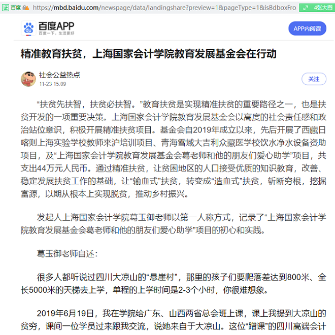 精准教育扶贫,上海国家会计学院教育发展基金会在行动【2021年11月23日,百家号-社会公益热点】
