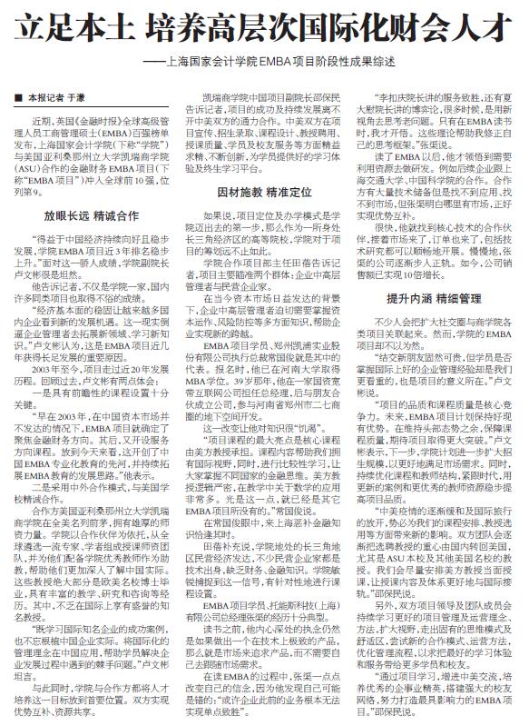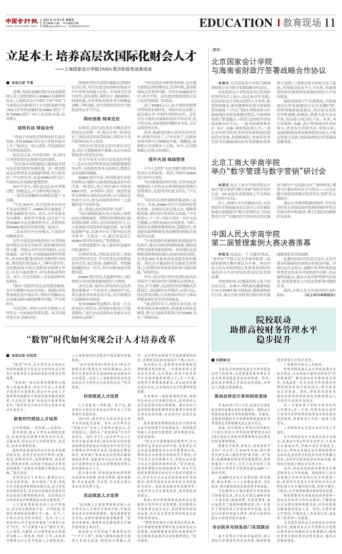 立足本土 培养高层次国际化财会人才——上海国家会计学院EMBA项目阶段性成果综述【2021年12月3日,中国会计报】