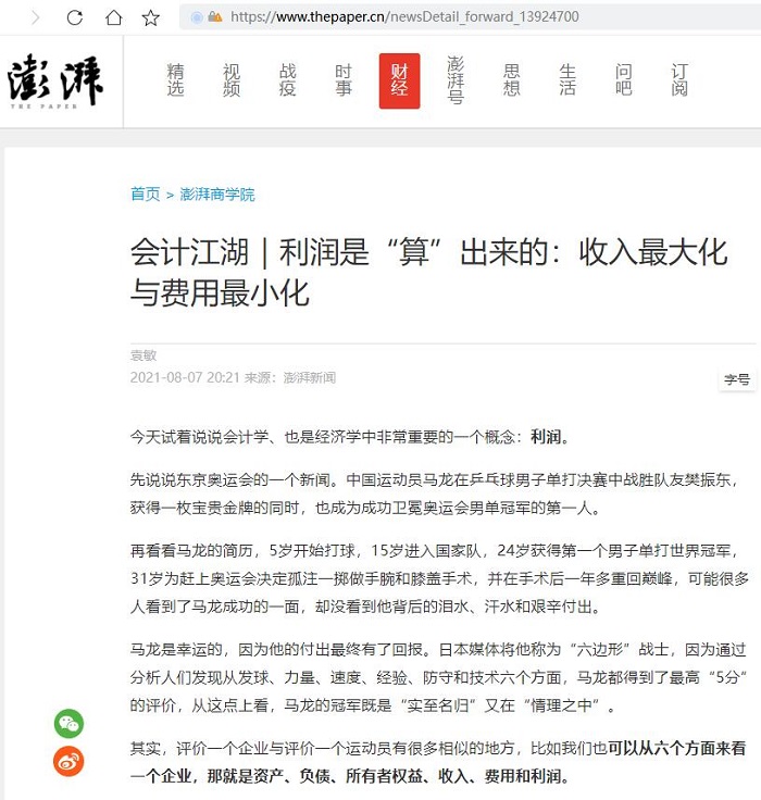 袁敏:会计江湖|利润是“算”出来的:收入最大化与费用最小化【2021年8月7日,澎湃新闻】