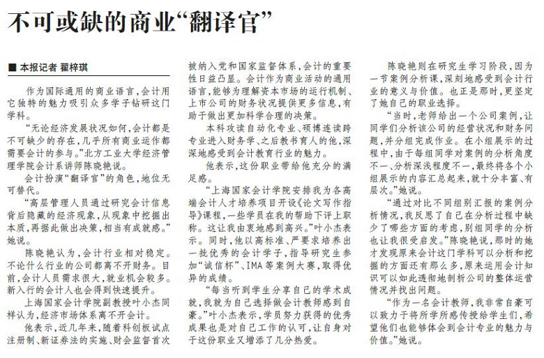 叶小杰:不可或缺的商业“翻译官”【2021年12月10日,中国会计报】