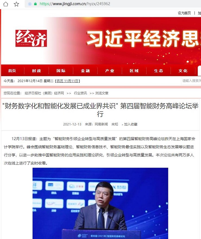 "财务数字化和智能化发展已成业界共识" 第四届智能财务高峰论坛举行【2021年12月13日,经济日报】