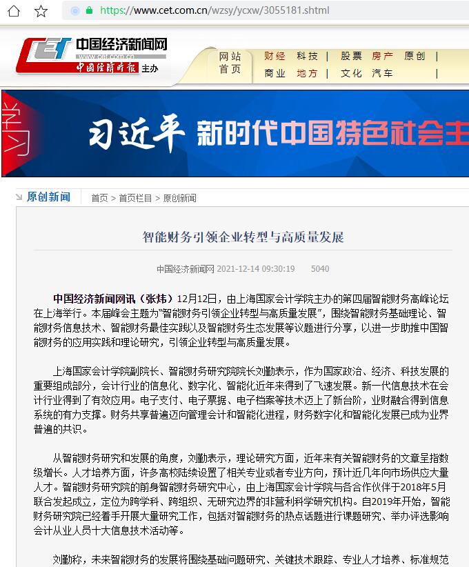 智能财务引领企业转型与高质量发展【2021年12月14日,中国经济时报】
