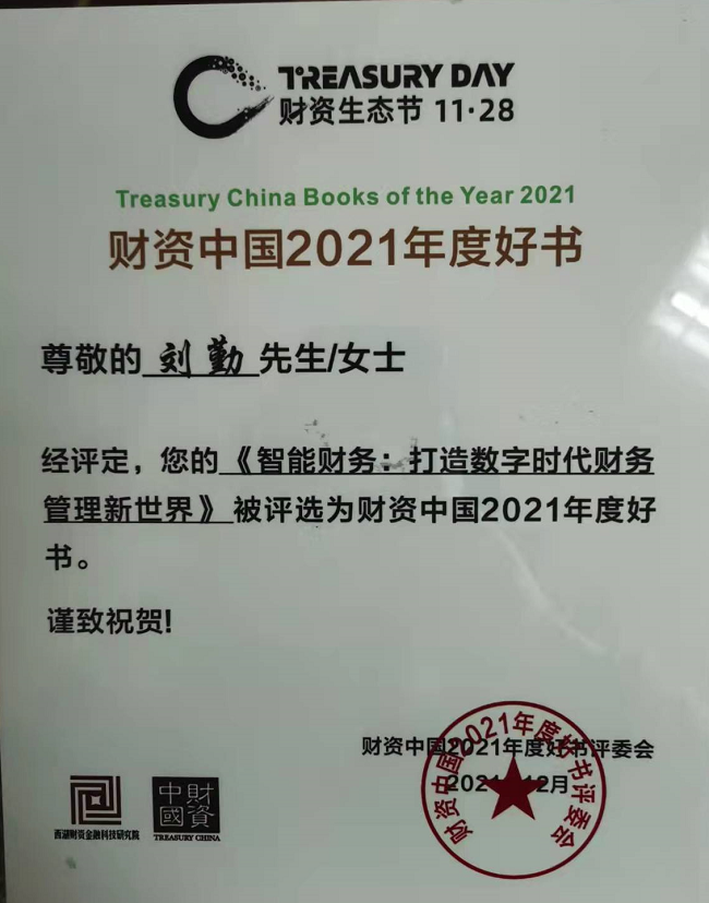 喜讯!《智能财务:打造数字时代财务管理新世界》获“财资中国2021年度好书”殊荣