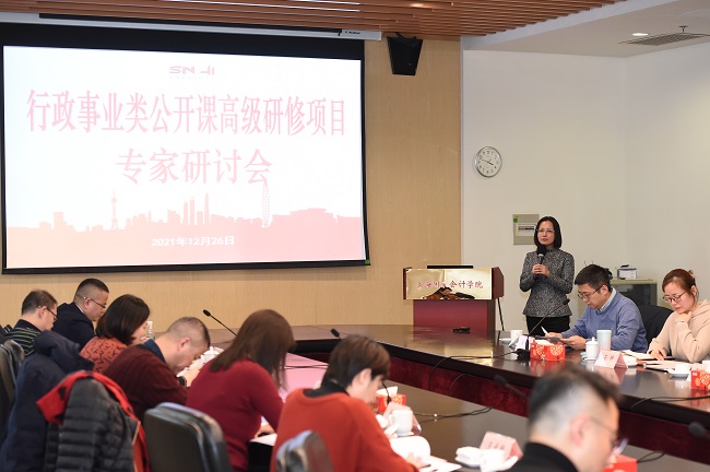为进一步落实财政部《会计行业人才发展规划(2021-2025)》总体要求,推动学院行政事业类公开课程高质量发展,公共管理培训部于12月26日牵头召开了“2022年行政事业类公开课高级研修项目专家研讨会”,多名来自上海市财政系统、卫生系统和教育系统的专家和财务负责人受邀出席,学院党委委员、副院长张各兴参加了本次研讨会。
