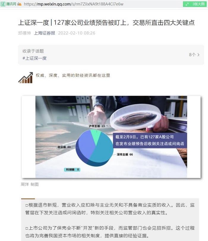 叶小杰:上证深一度│127家公司业绩预告被盯上,交易所直击四大关键点【2022年2月10日,上海证券报】