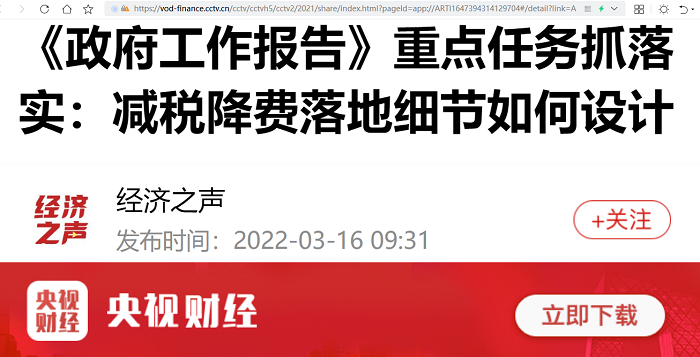 葛玉御:《政府工作报告》重点任务抓落实:减税降费落地细节如何设计【2022年3月16日,央广经济之声】