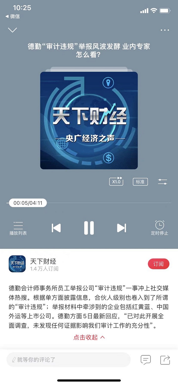 袁敏:德勤“审计违规”举报风波发酵 业内专家怎么看?【2022年2月5日,央广经济之声】
