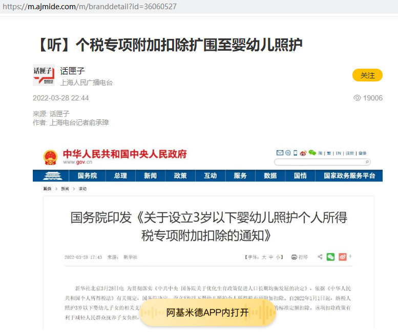 宫映华:【听】个税专项附加扣除扩围至婴幼儿照护【2022年3月28日,上海人民广播电台】