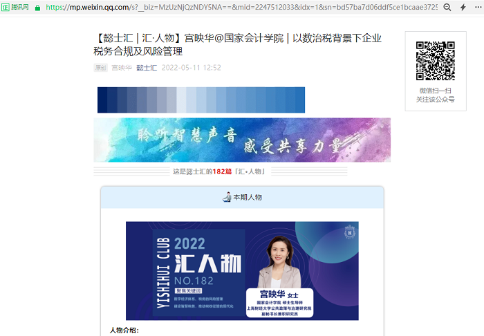 宫映华:【懿士汇 | 汇·人物】宫映华@国家会计学院 | 以数治税背景下企业税务合规及风险管理【2022年5月11日,懿士汇】