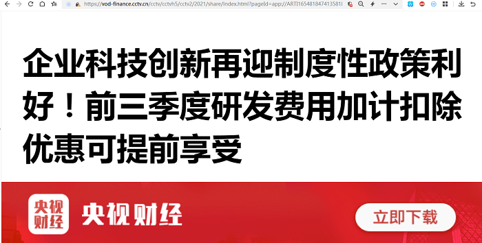葛玉御:企业科技创新再迎制度性政策利好!前三季度研发费用加计扣除优惠可提前享受【2022年6月9日,央视财经】