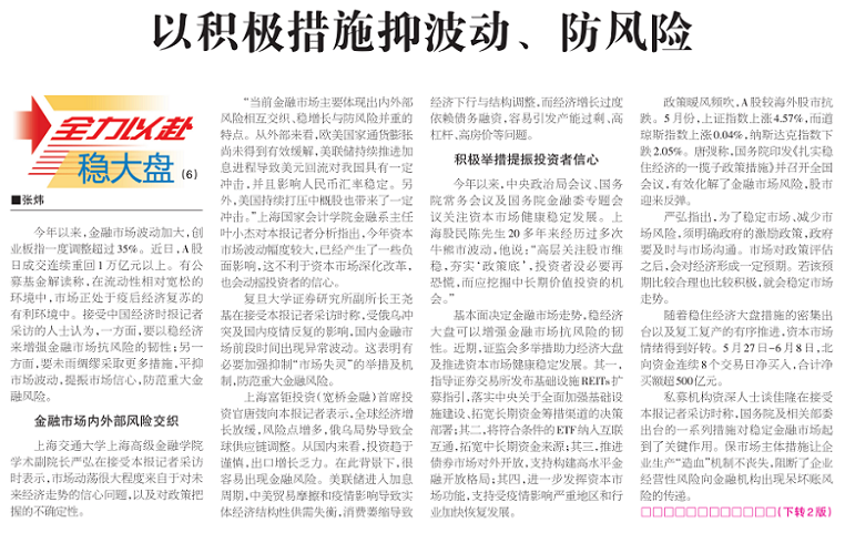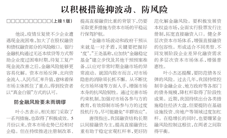 叶小杰:以积极措施抑波动、防风险【2022年6月10日,中国经济时报】