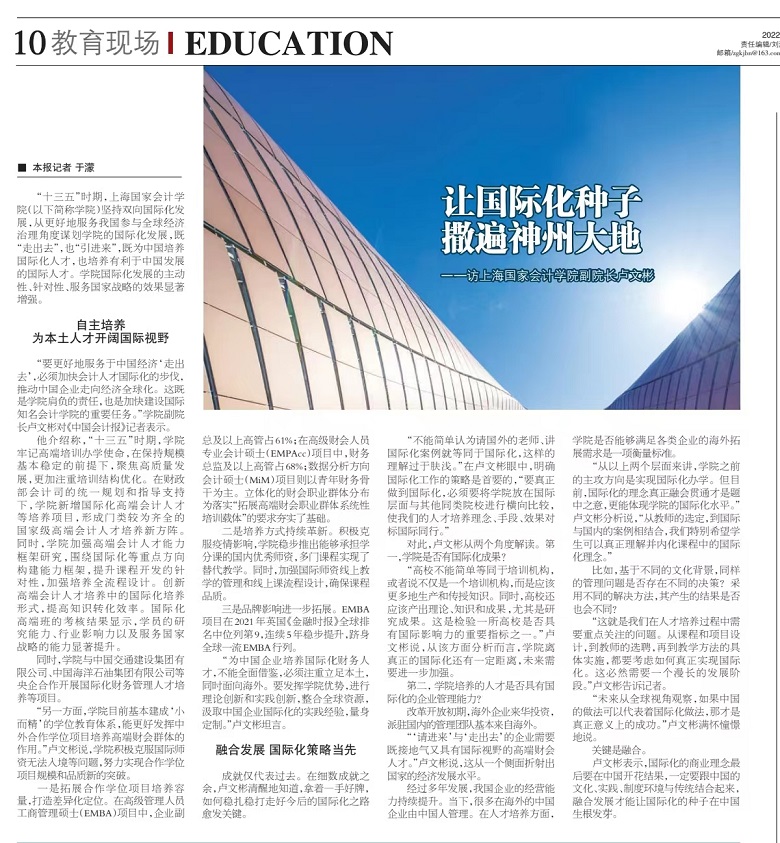 让国际化种子撒遍神州大地——访上海国家会计学院副院长卢文彬【2022年6月24日,中国会计报】