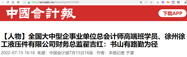 【人物】全国大中型企事业单位总会计师高端班学员、徐州徐工液压件有限公司财务总监翟吉红:书山有路勤为径【2022年7月15日,中国会计报】