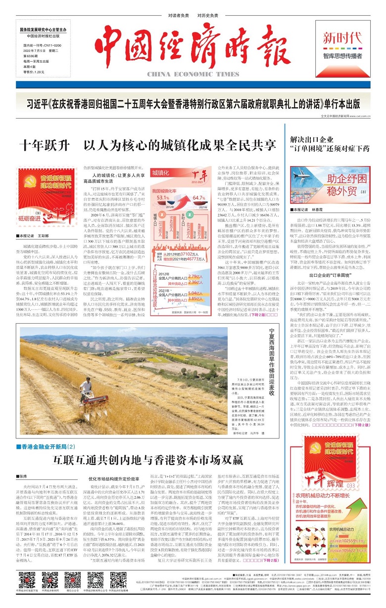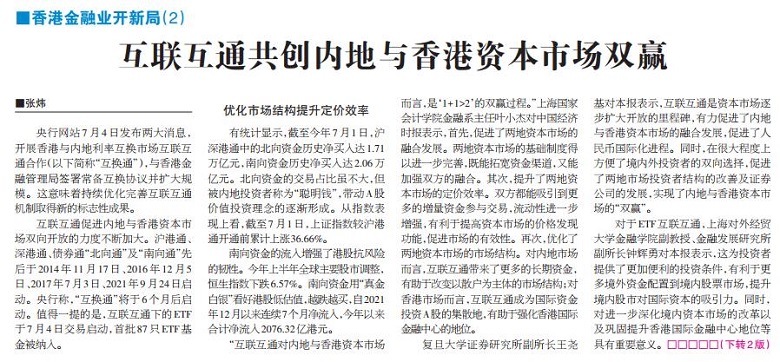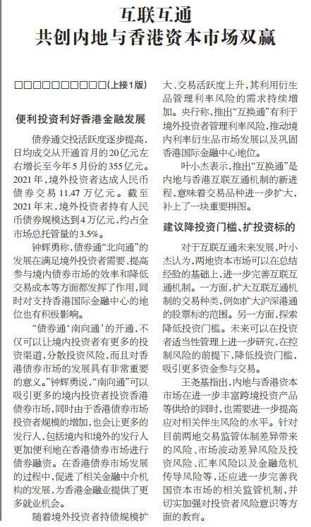 叶小杰:香港金融业开新局(2)丨互联互通共创内地与香港资本市场双赢【2022年7月5日,中国经济时报】