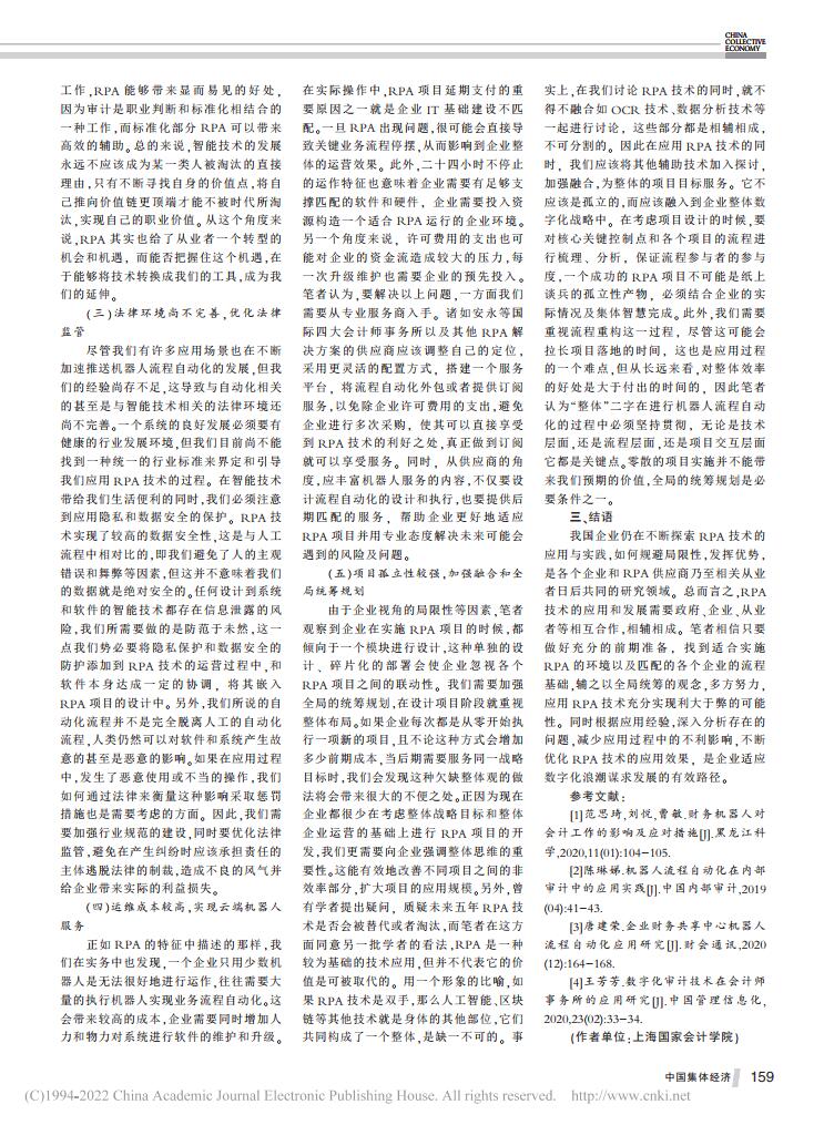 宋航、李想:RPA机器人流程自动化应用中的问题及对策刍议【2022年第2期,中国集体经济】