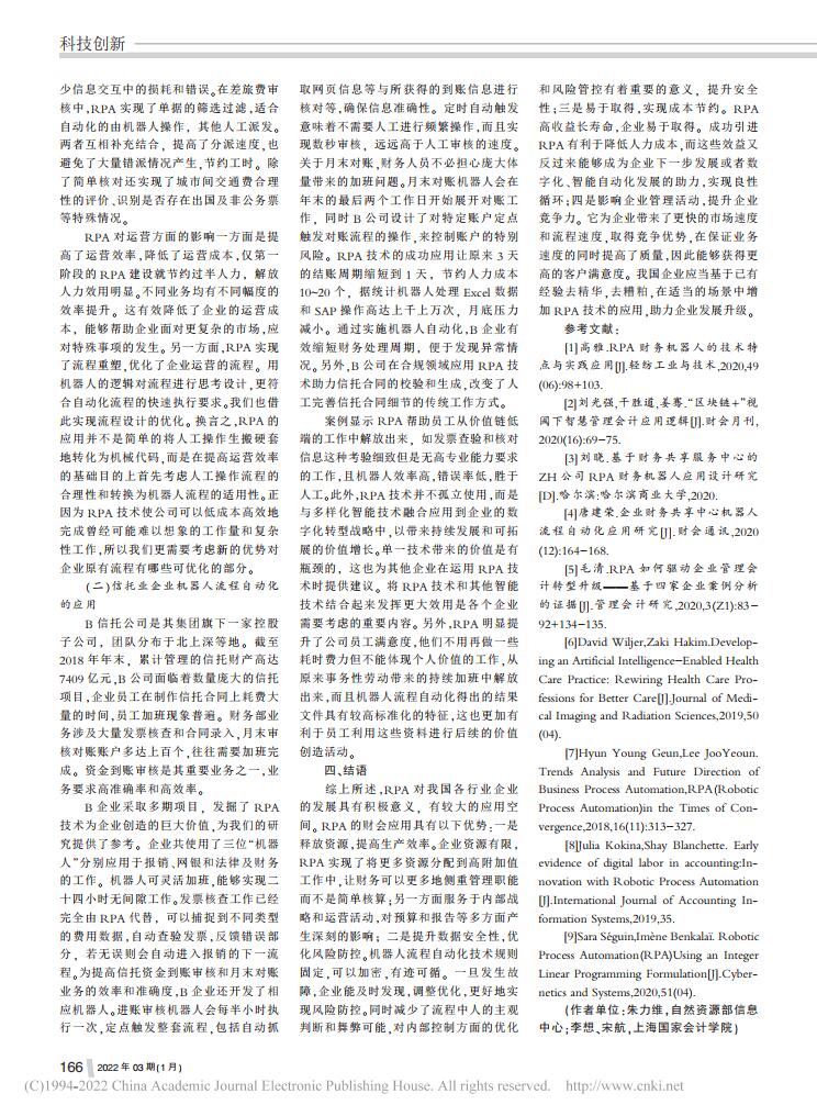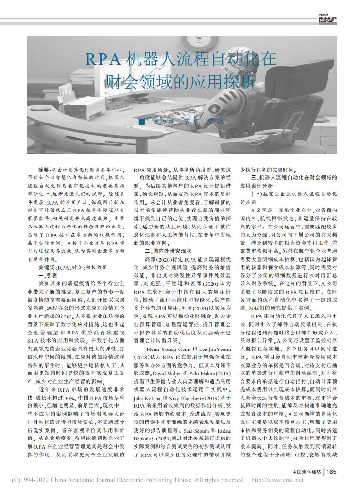李想、宋航:RPA机器人流程自动化在财会领域的应用探析【2022年第3期,中国集体经济】