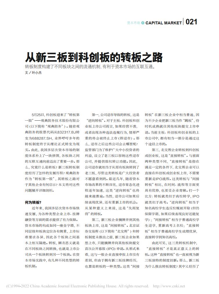 叶小杰:从新三板到科创板的转板之路【2022年第7期,新理财】