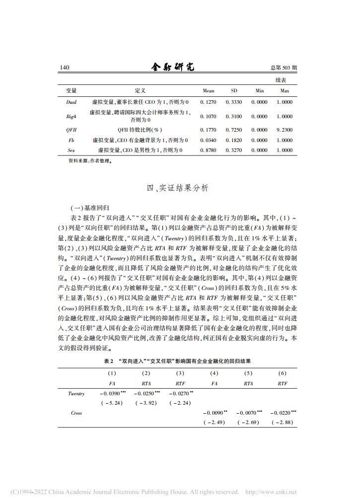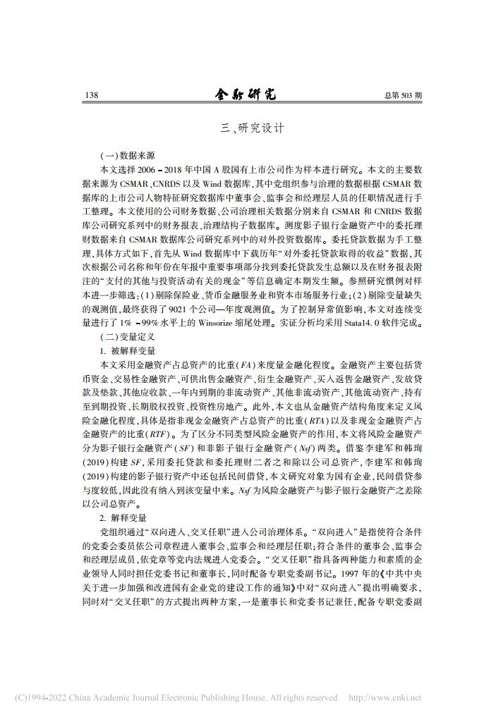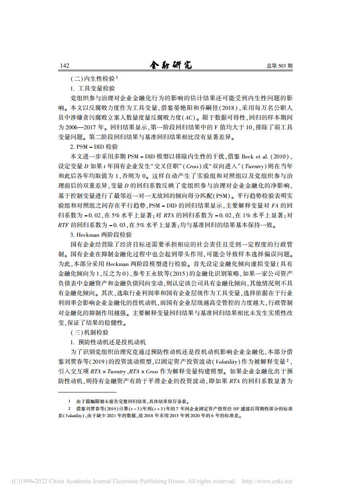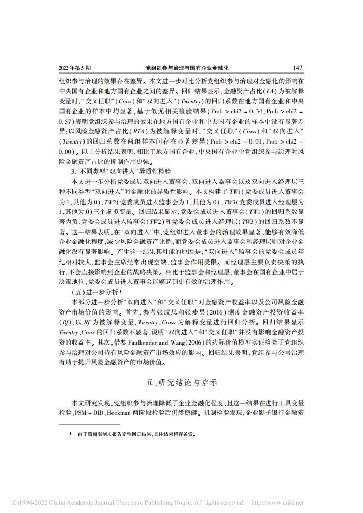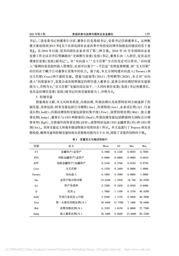 乔嗣佳、李扣庆、佟成生:党组织参与治理与国有企业金融化【2022年第5期,金融研究】