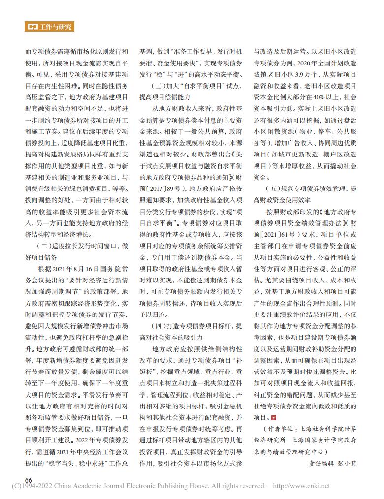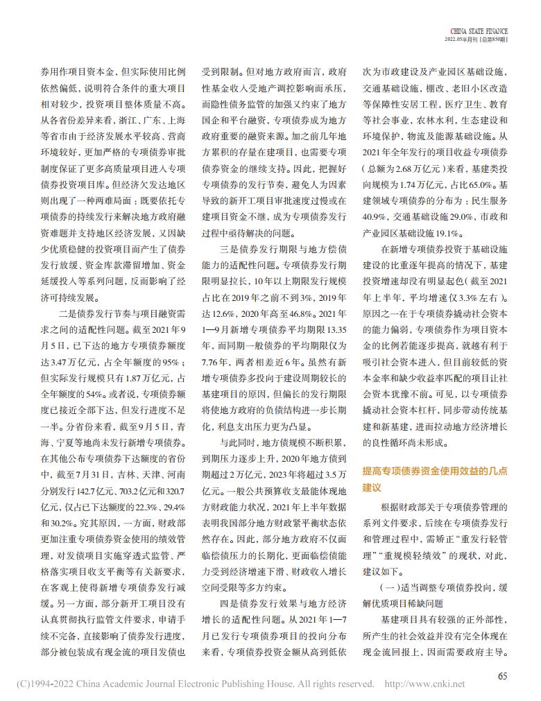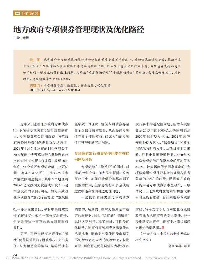 章辉:地方政府专项债券管理现状及优化路径【2022年第5期,中国财政】