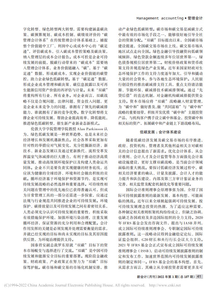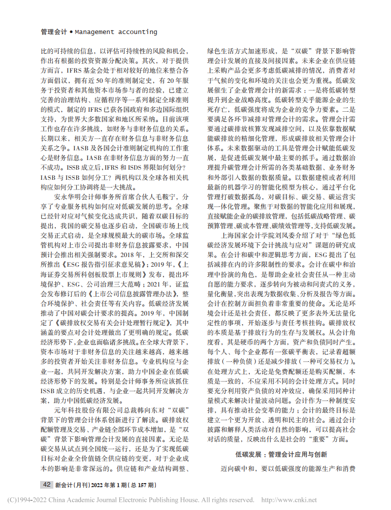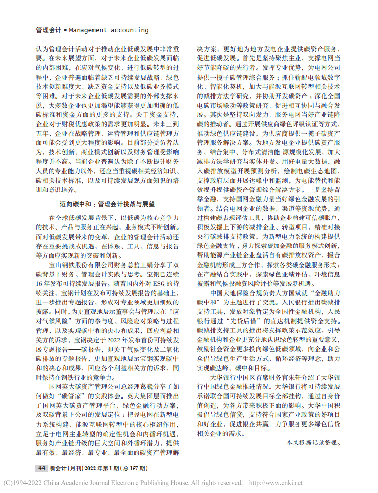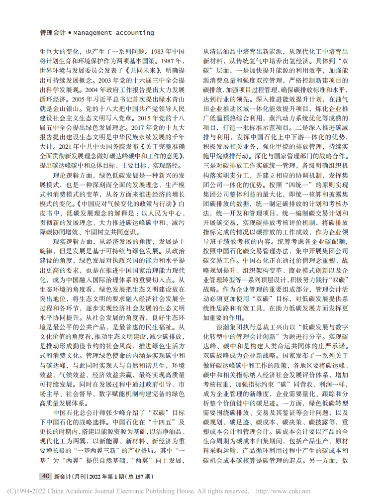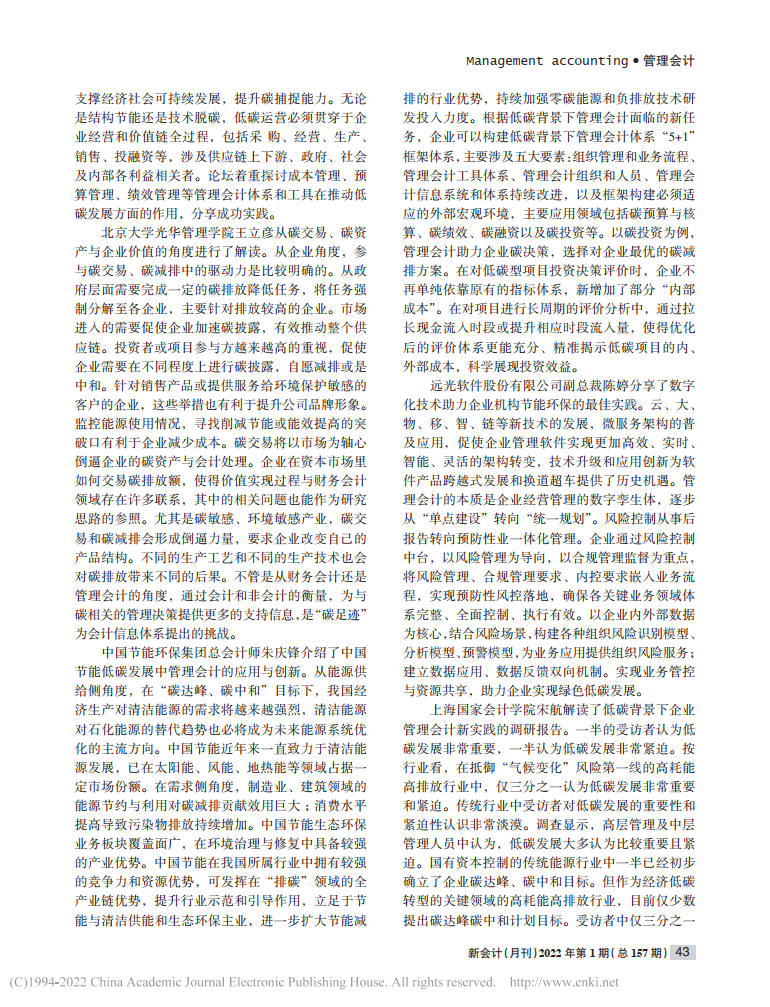 李泓:管理会计助力低碳发展——上海国家会计学院第九届管理会计论坛综述【2022年第1期,新会计】