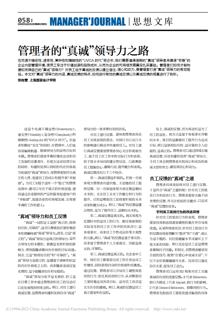 张向菁:管理者的”真诚“领导力之路【2022年第3期,经营管理者】