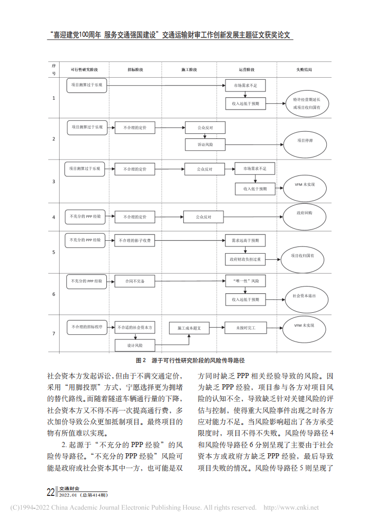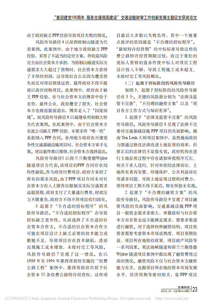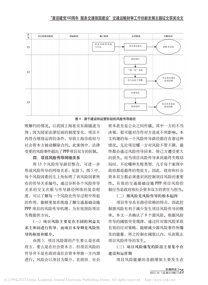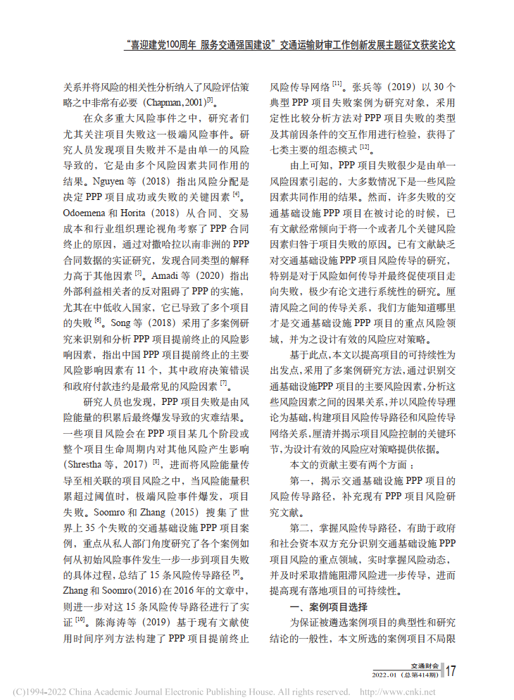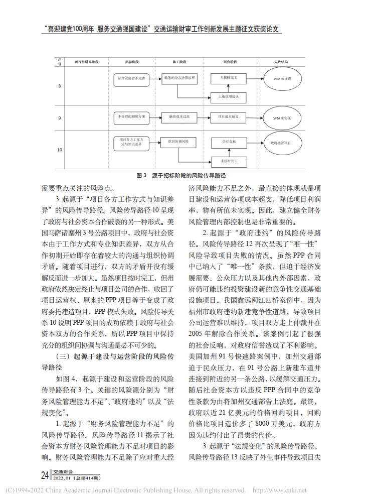 李颖琦:交通基础设施PPP项目的风险传导路径研究【2022年第1期,交通财会】