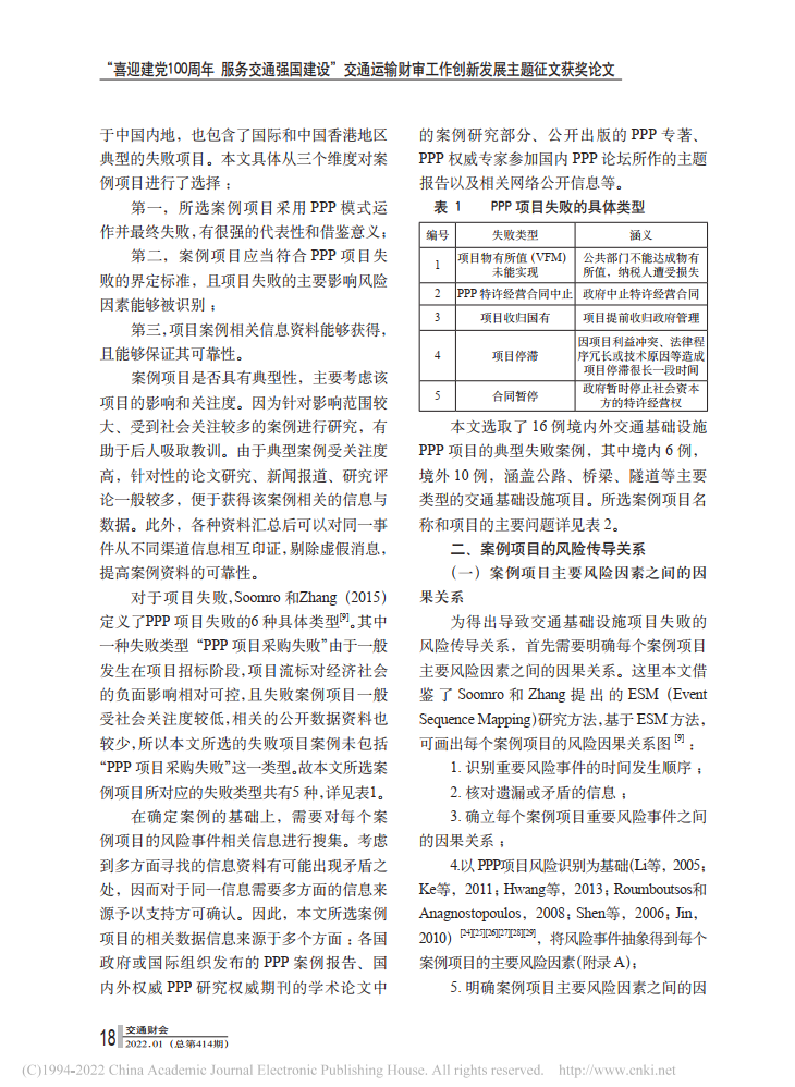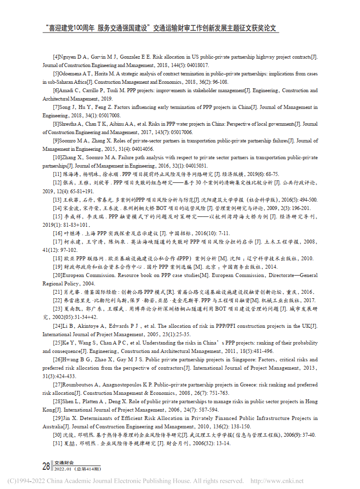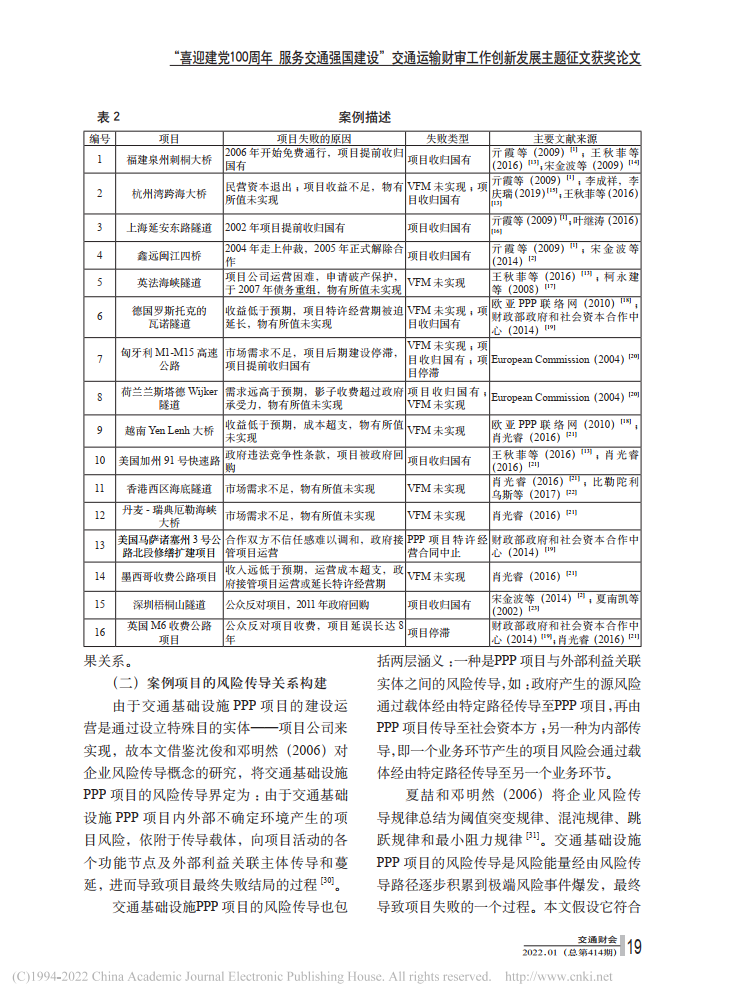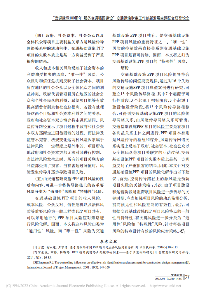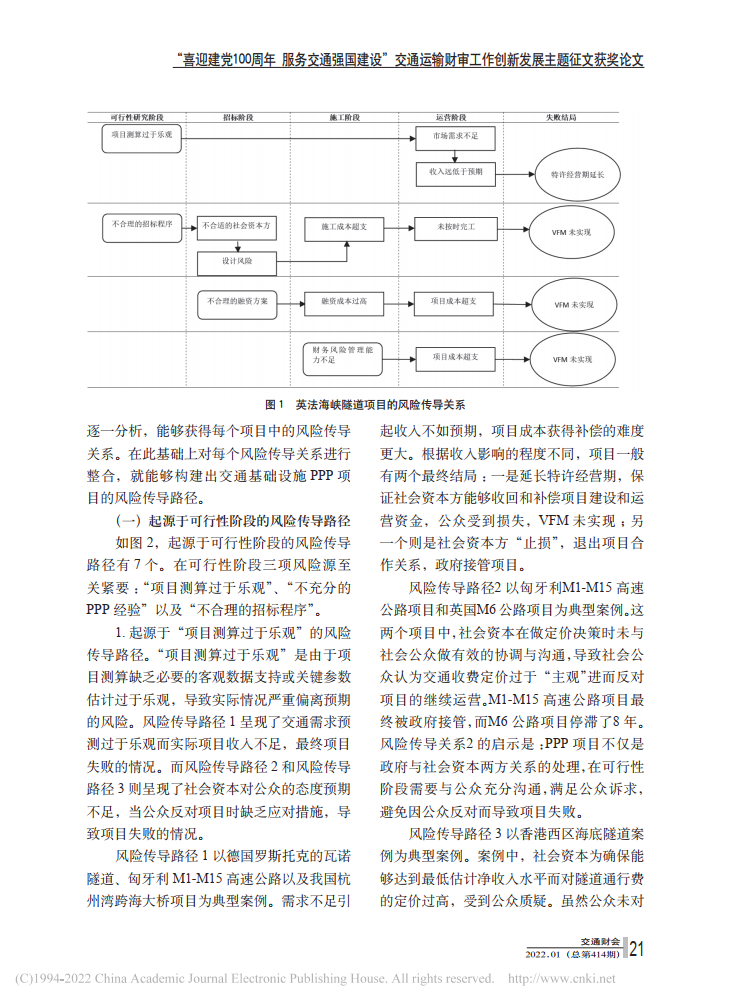 李颖琦:交通基础设施PPP项目的风险传导路径研究【2022年第1期,交通财会】