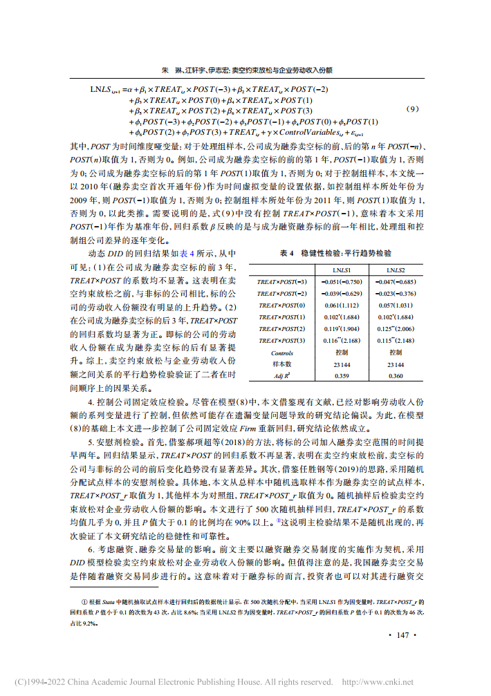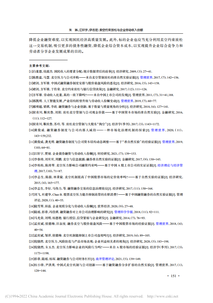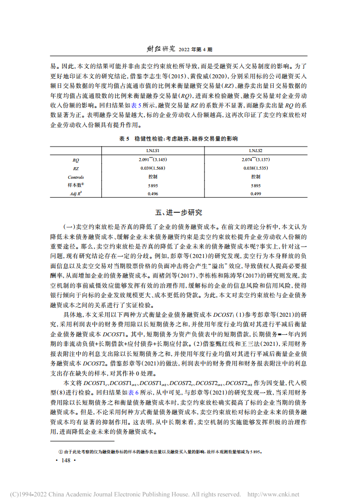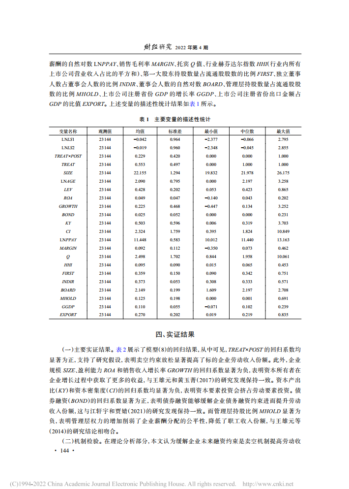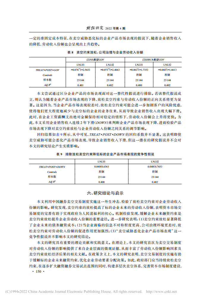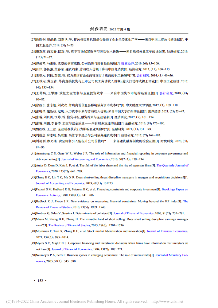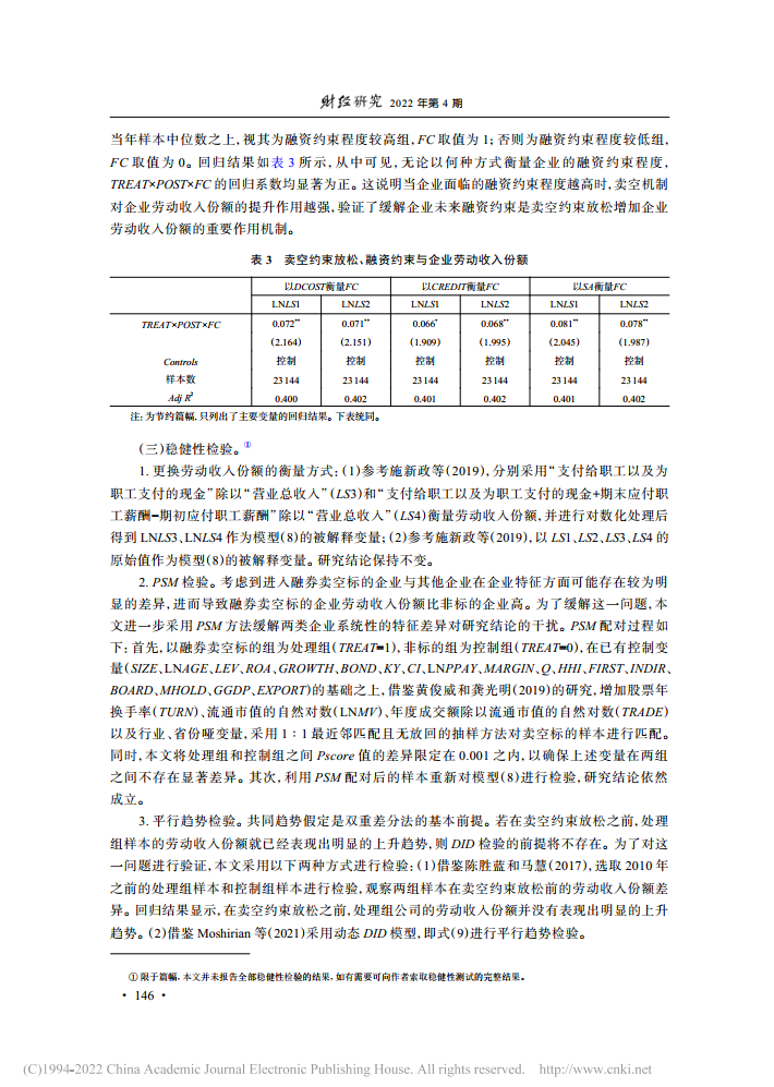 朱琳:卖空约束放松与企业劳动收入份额【2022年第4期,财经研究】