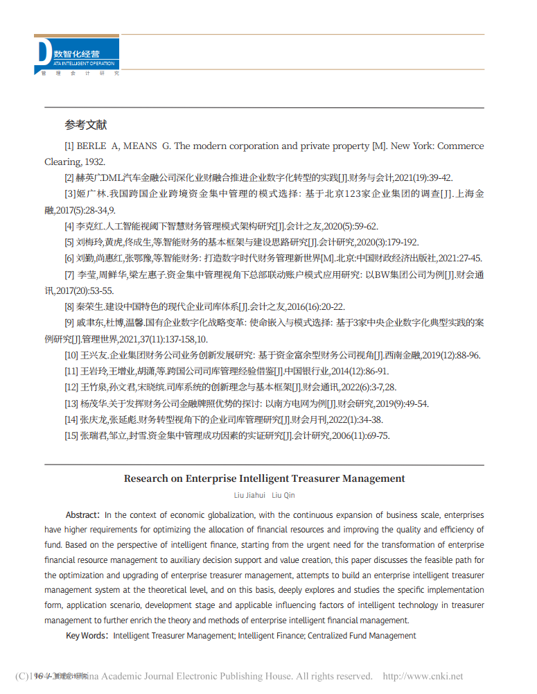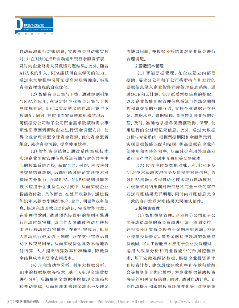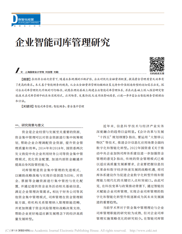 刘佳慧、刘勤:企业智能司库管理研究【2022年第5期,管理会计研究】