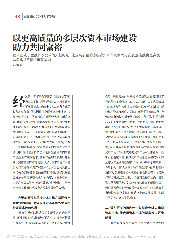 周贇:以更高质量的多层次资本市场建设助力共同富裕【2022年第1期,新理财】