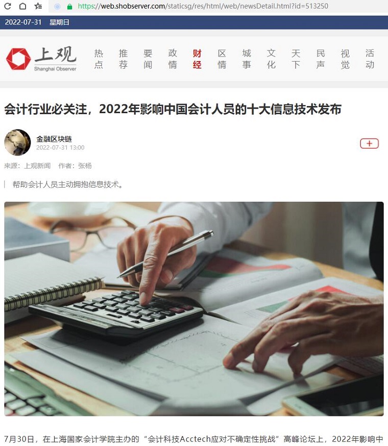 会计行业必关注,2022年影响中国会计人员的十大信息技术发布【2022年7月31日,解放日报】
