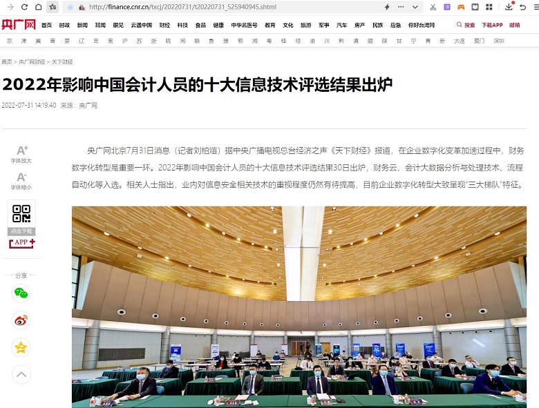 2022年影响中国会计人员的十大信息技术评选结果出炉【2022年7月31日,央广网】