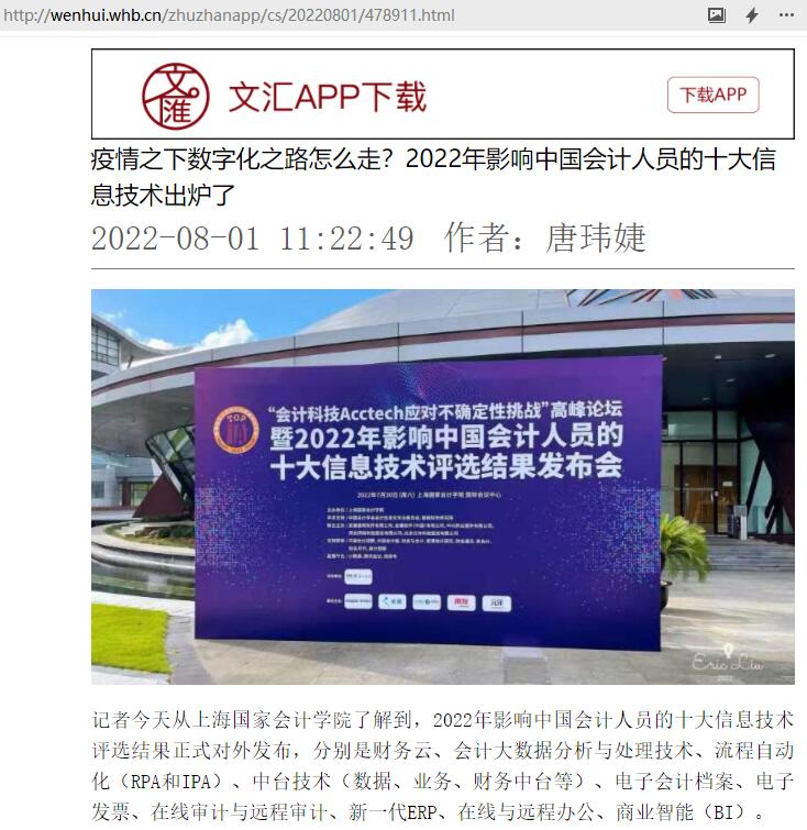 疫情之下数字化之路怎么走?2022年影响中国会计人员的十大信息技术出炉了【2022年8月1日,文汇报】