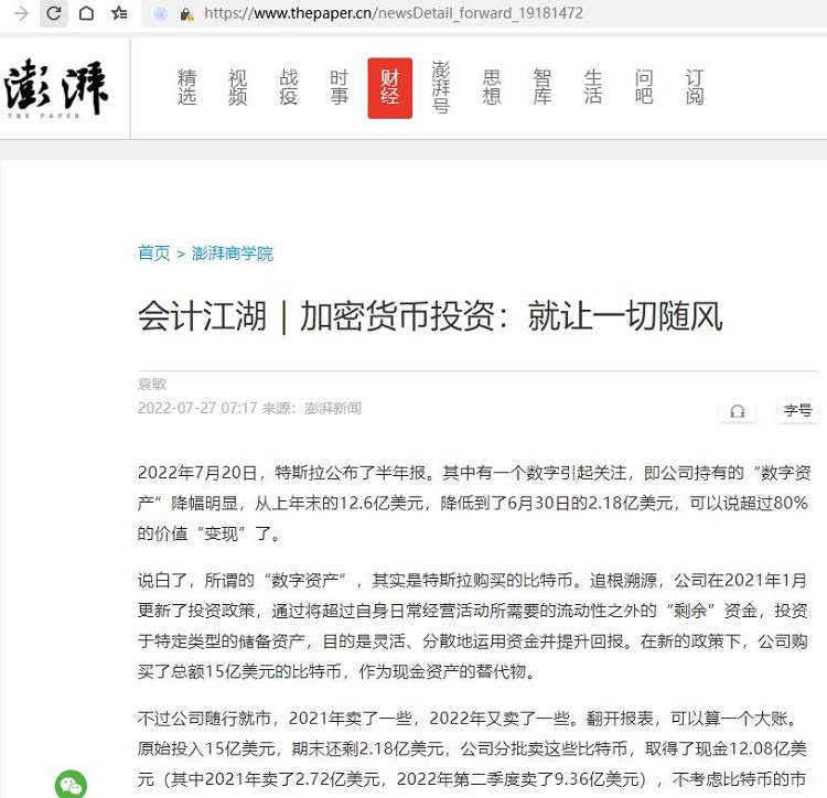 袁敏:会计江湖|加密货币投资:就让一切随风【2022年7月27日,澎湃新闻】