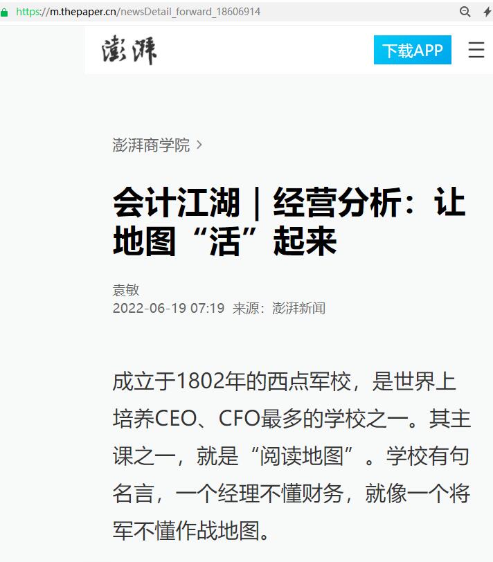 袁敏:会计江湖|经营分析:让地图“活”起来【2022年6月19日,澎湃新闻】