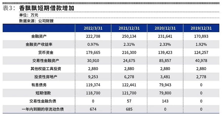 在香飘飘的业绩下滑的同时,另一个让人感到困惑的地方是,从2020年开始,在并不缺钱的情况下,公司大幅增加了短期借款,导致合并资产负债表出现大额金融资产和大额借款同时存在的现象。
