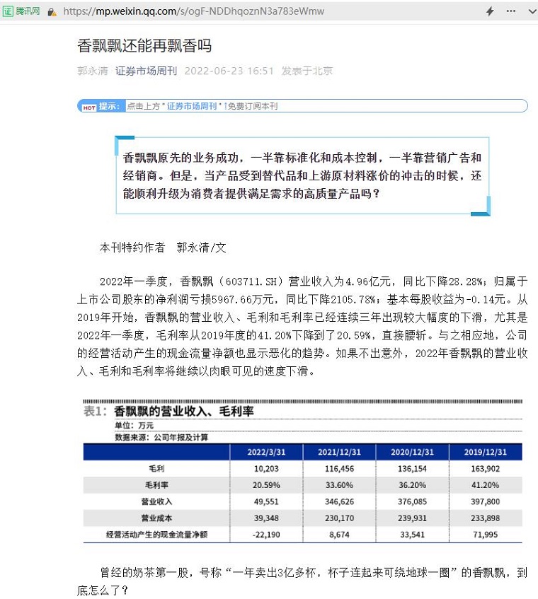 郭永清:香飘飘还能再飘香吗【2022年6月23日,证券市场周刊】